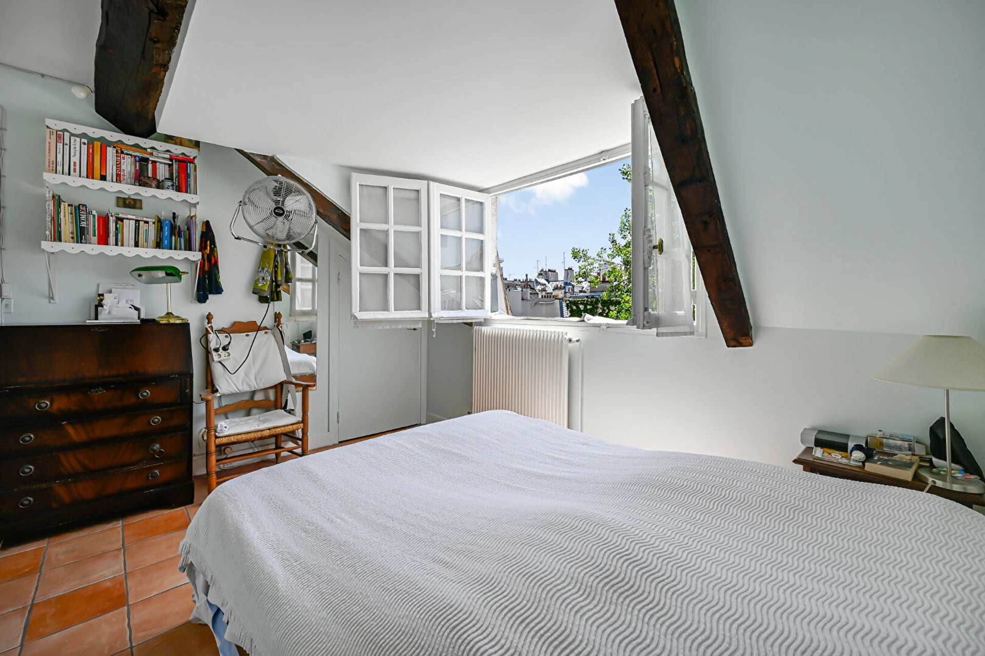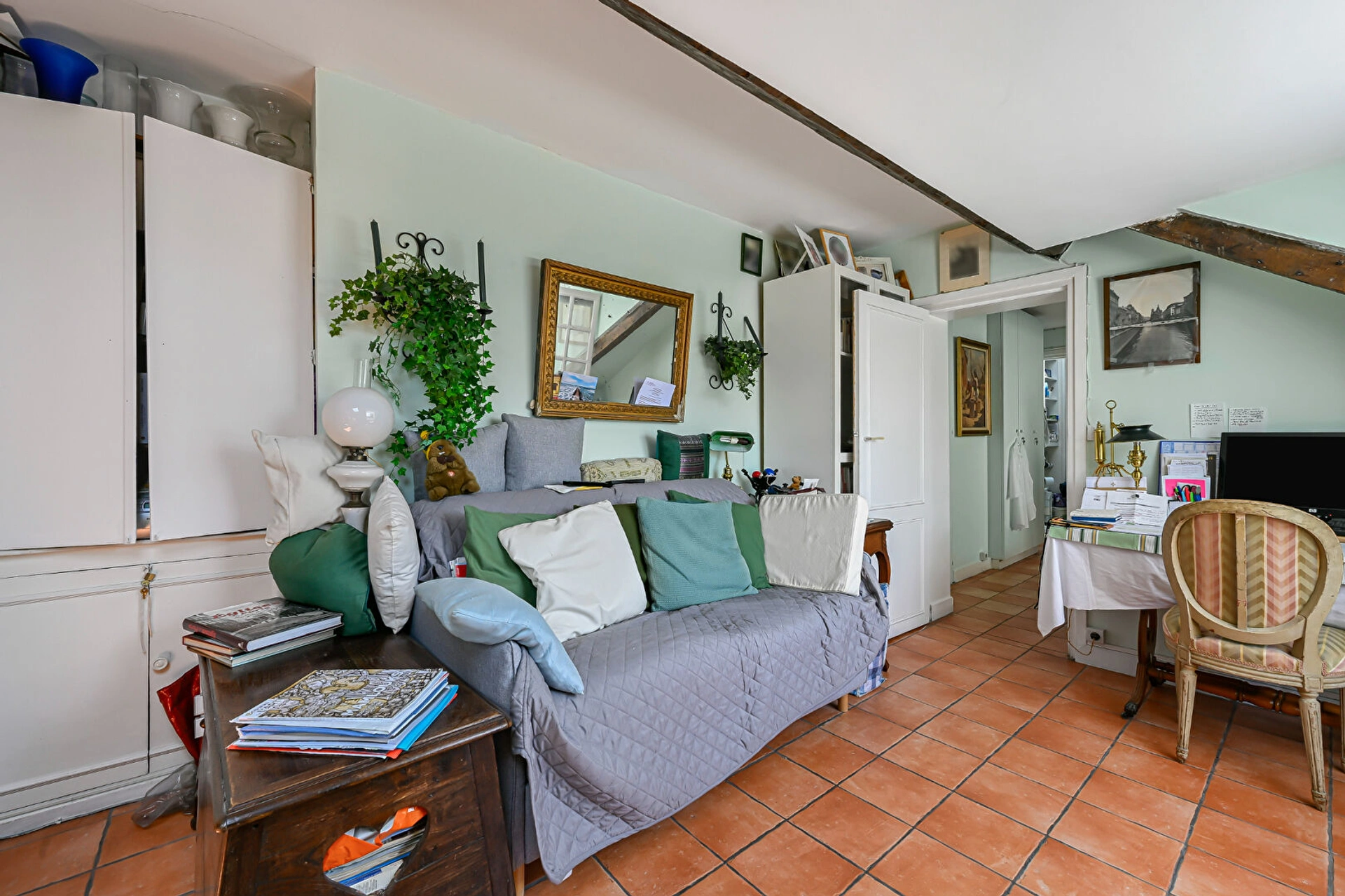 Emplacement exceptionnel au dernier étage - Magnifique immeuble 1750 avec escalier inscrit aux monuments historiques - Gardien. Découvrez ce bel appartement au calme absolu et exposé plein sud. Le bien se compose d'une entrée avec rangements, d'un escalier privatif qui donne accès à une salle à manger avec cuisine, d'une pièce de vie, d'une chambre et d'une salle d'eau avec WC.