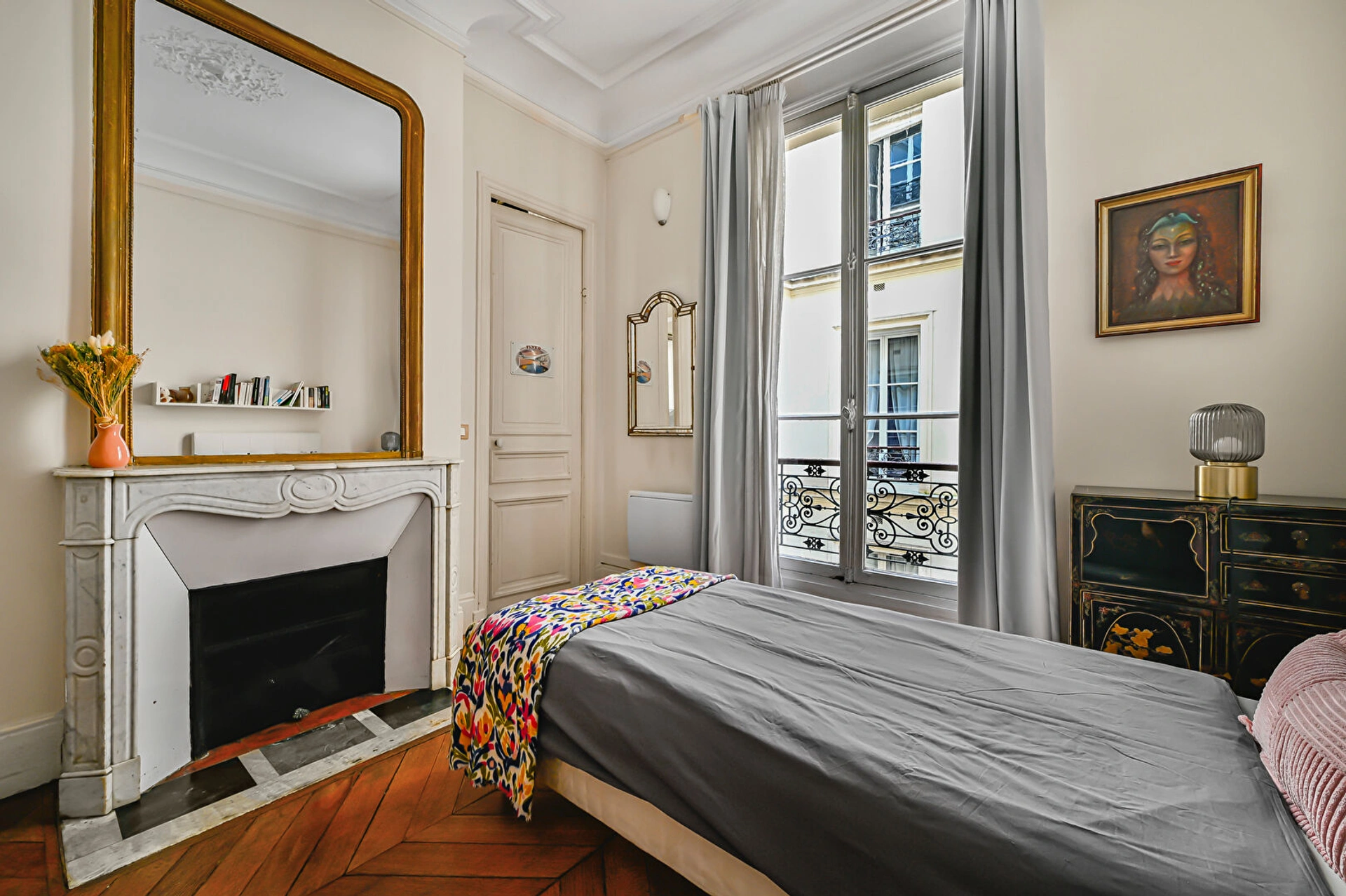 3,25m de hauteur sous plafond, traversant (exposé SE/NO), agencement optimal avec les pièces de vie sur rue et le côté nuit sur cour, charme de l'ancien avec parquet point de hongrie, moulures et cheminées - doté d'un ascenseur.