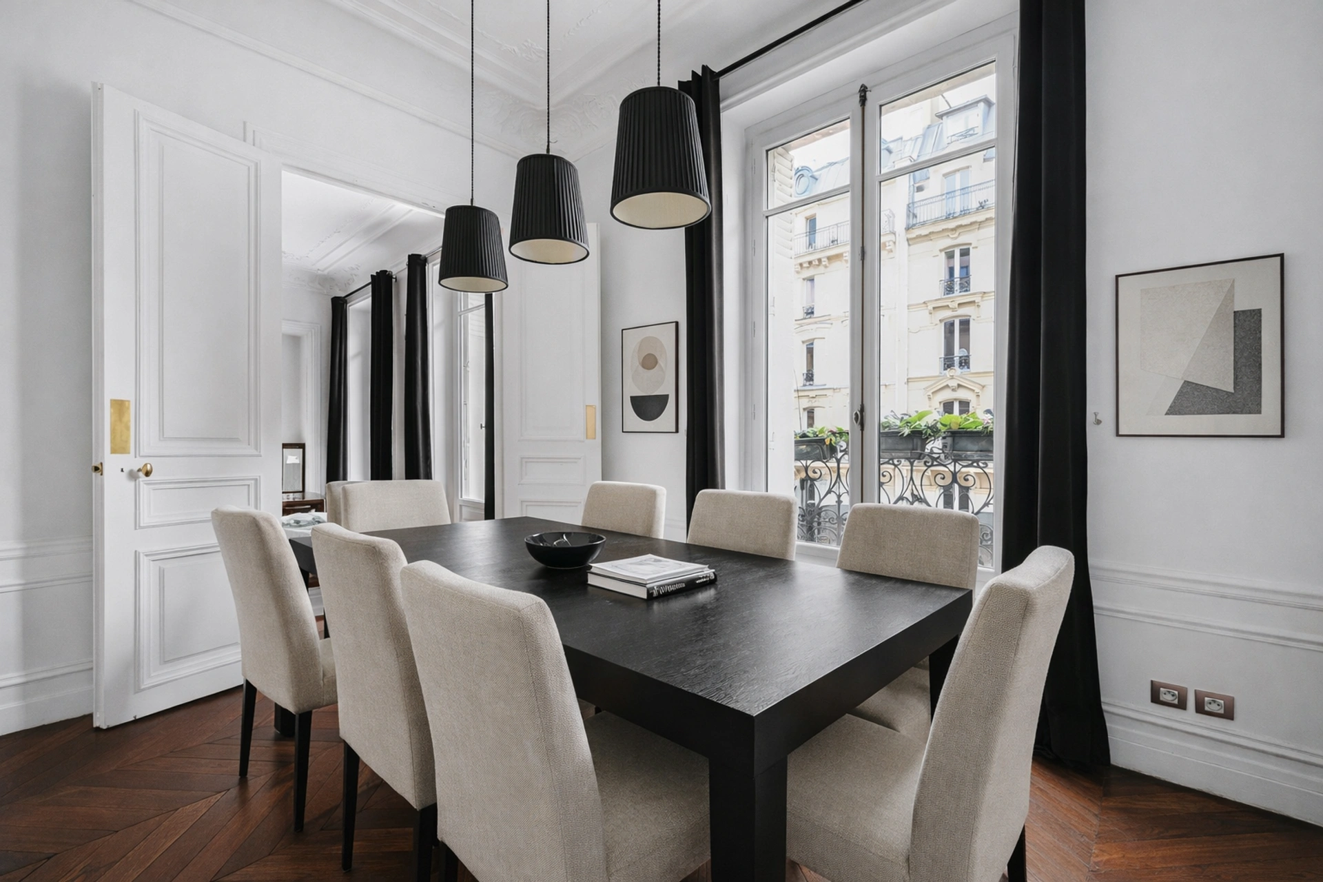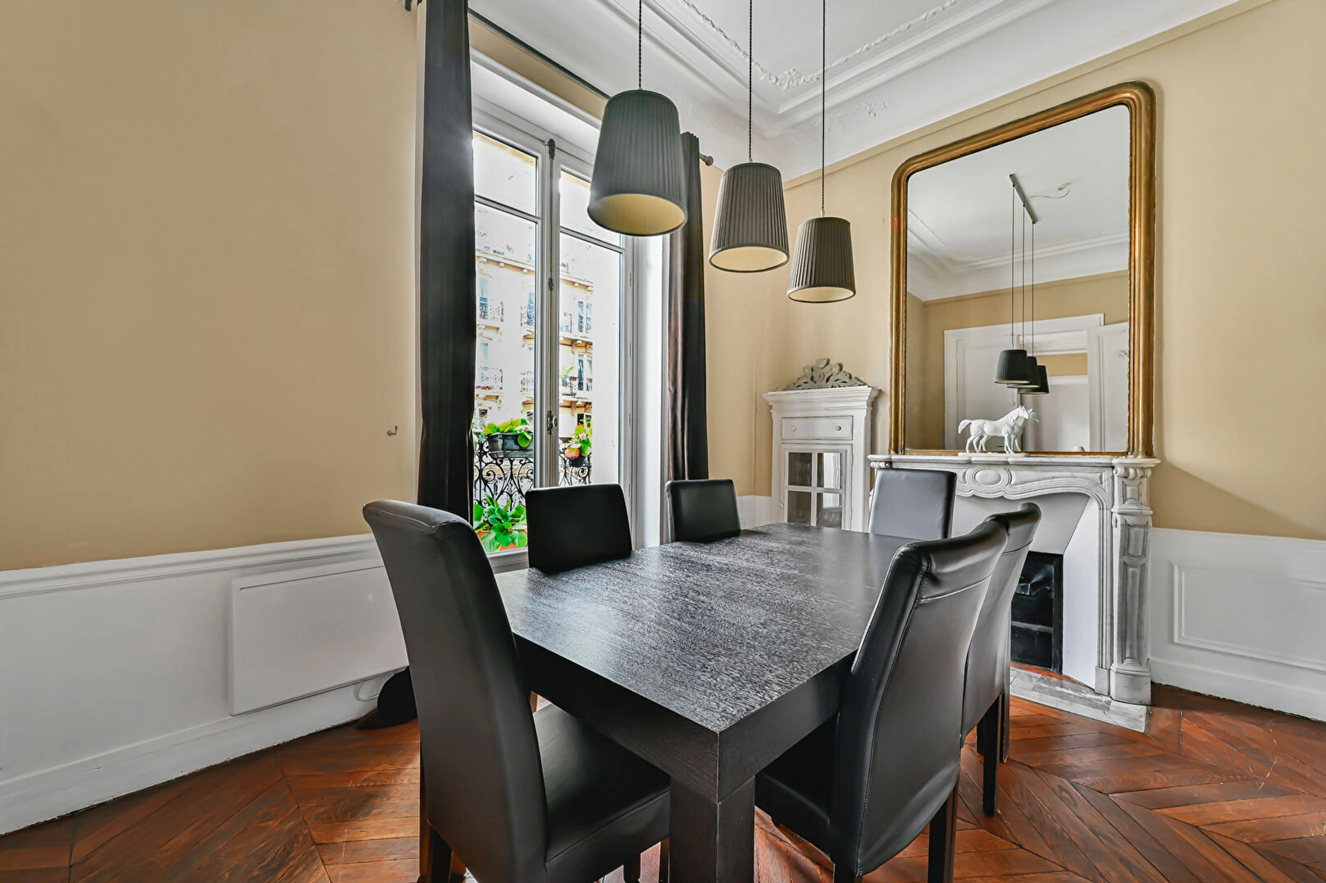 Le balcon filant - est la pierre angulaire de l'immeuble Haussmannien : ici il est exposé sud est et permet de s'offrir de la verdure sur 6,5m2 et donne sur les pièces de vie (salon et salle à manger).