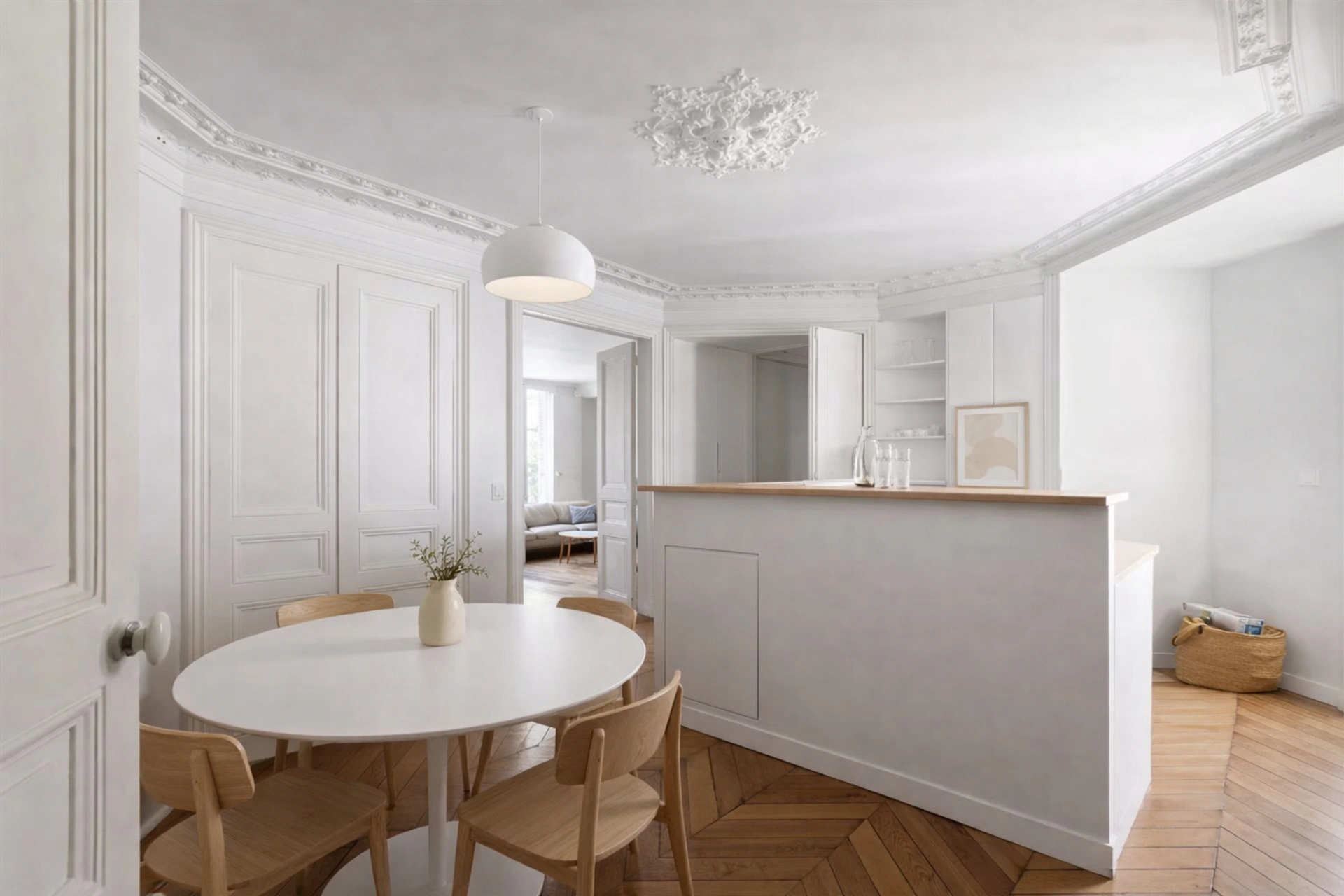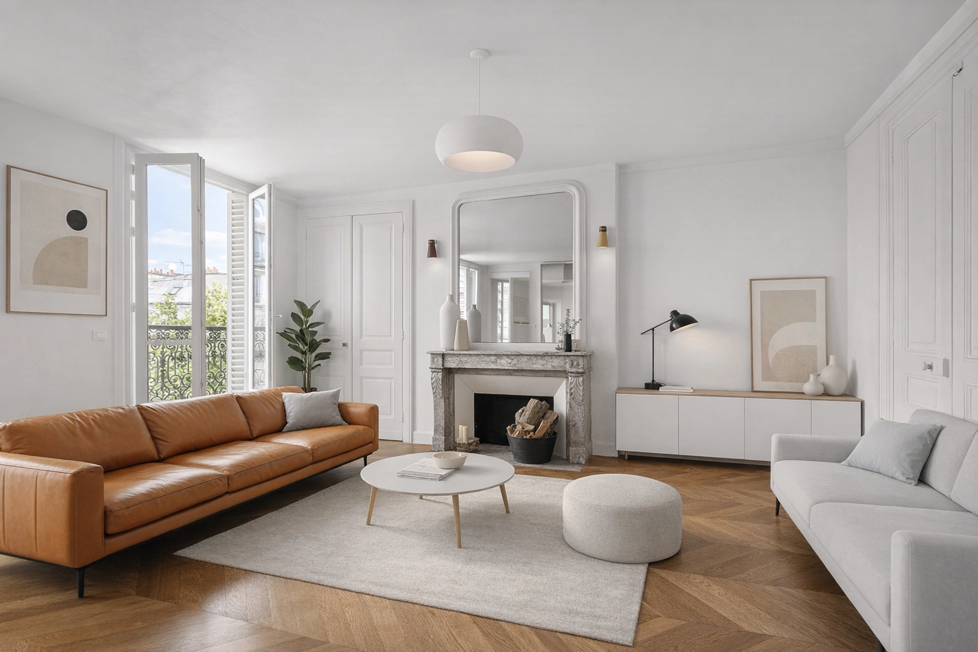 A deux pas du Marais, au 5ème étage avec ascenseur d'un bel immeuble ancien, cet élégant appartement haussmannien traversant de 105 m² séduit par sa luminosité (exposition est/ouest) et son charme d'origine : parquet, moulures et cheminées fonctionnelles.