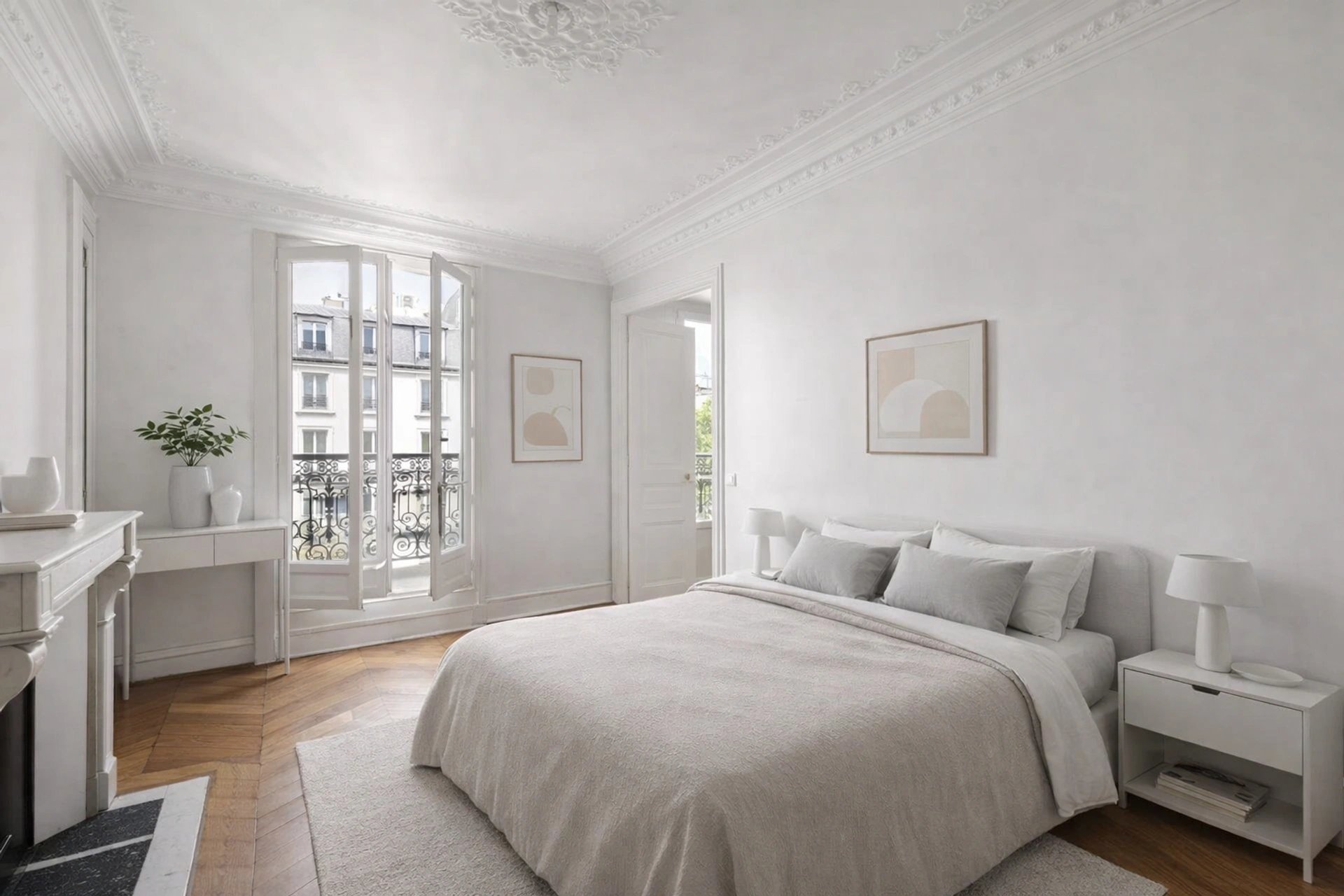 A deux pas du Marais, au 5ème étage avec ascenseur d'un bel immeuble ancien, cet élégant appartement haussmannien traversant de 105 m² séduit par sa luminosité (exposition est/ouest) et son charme d'origine : parquet, moulures et cheminées fonctionnelles.