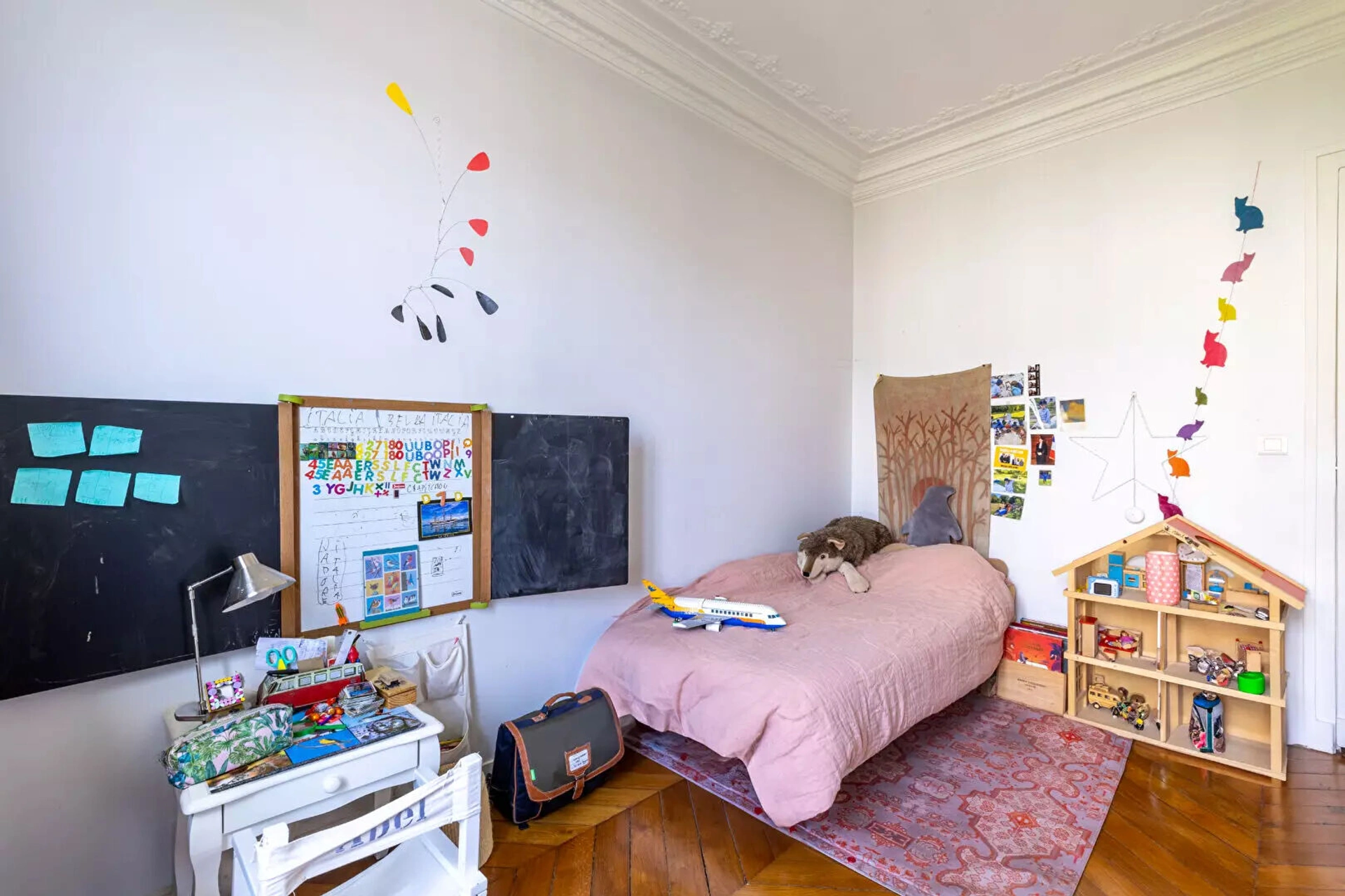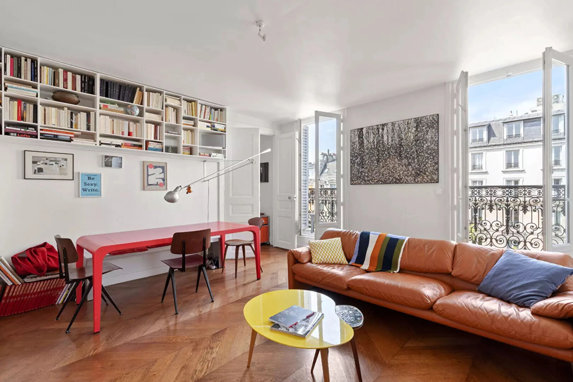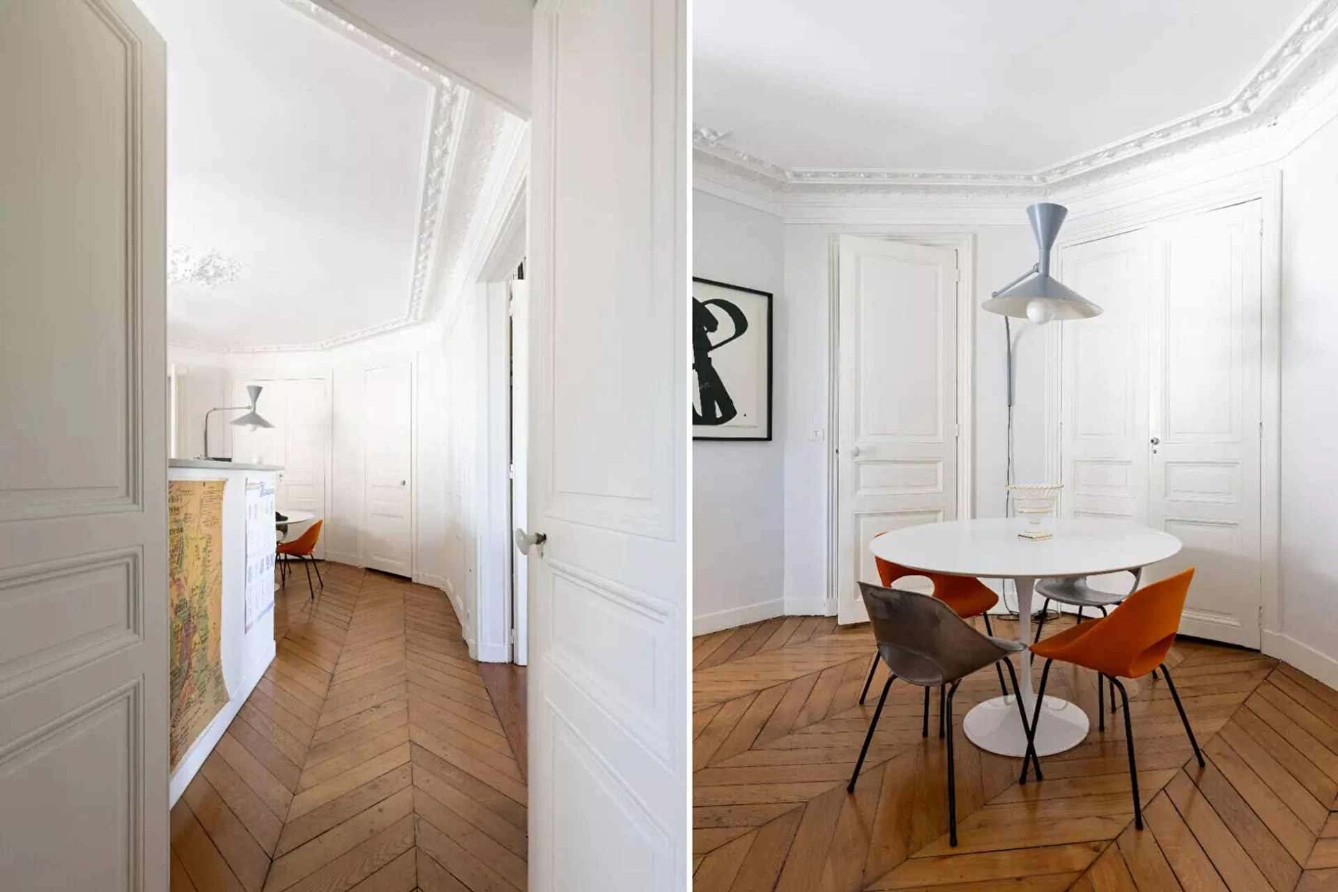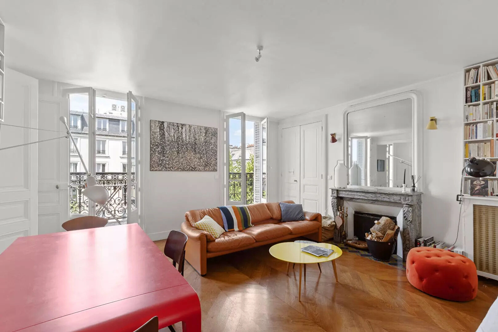 A deux pas du Marais, au 5ème étage avec ascenseur d'un bel immeuble ancien, cet élégant appartement haussmannien traversant de 105 m² séduit par sa luminosité (exposition est/ouest) et son charme d'origine : parquet, moulures et cheminées fonctionnelles.