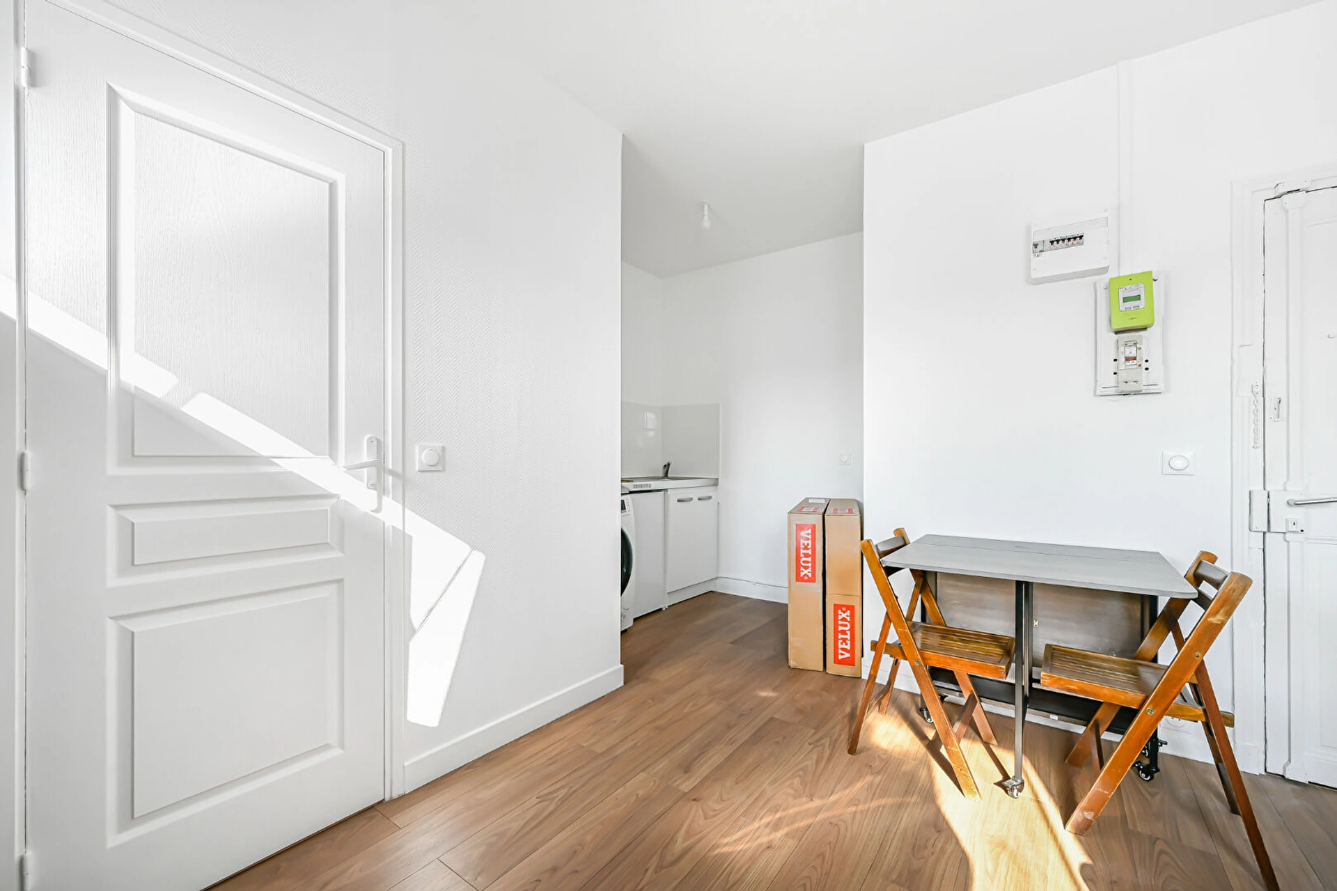 Entièrement rénové, il se compose d'un séjour lumineux avec deux fenêtres (double exposition), d'une cuisine équipée et fonctionnelle, ainsi que d'une salle de bain moderne avec WC.