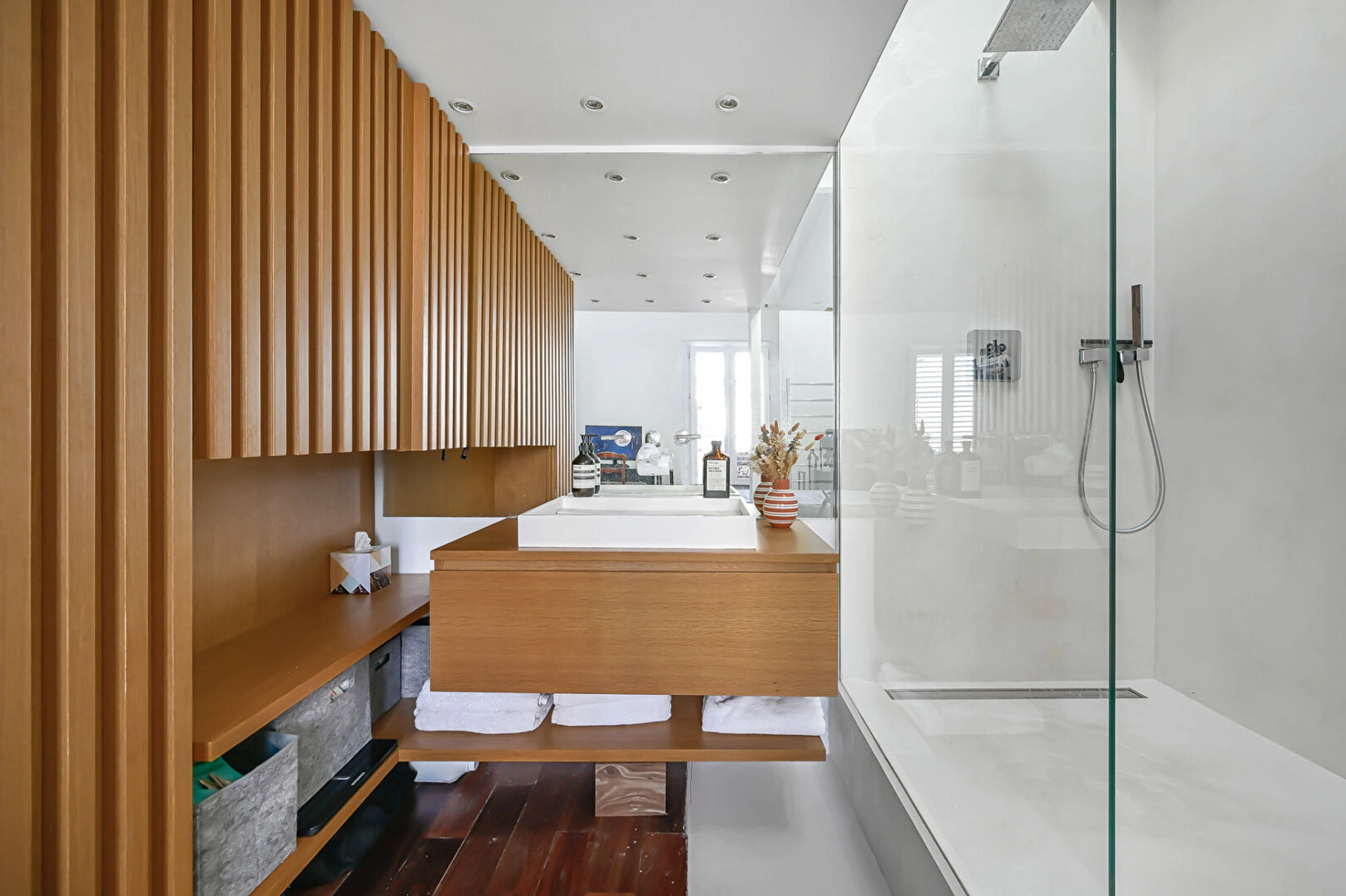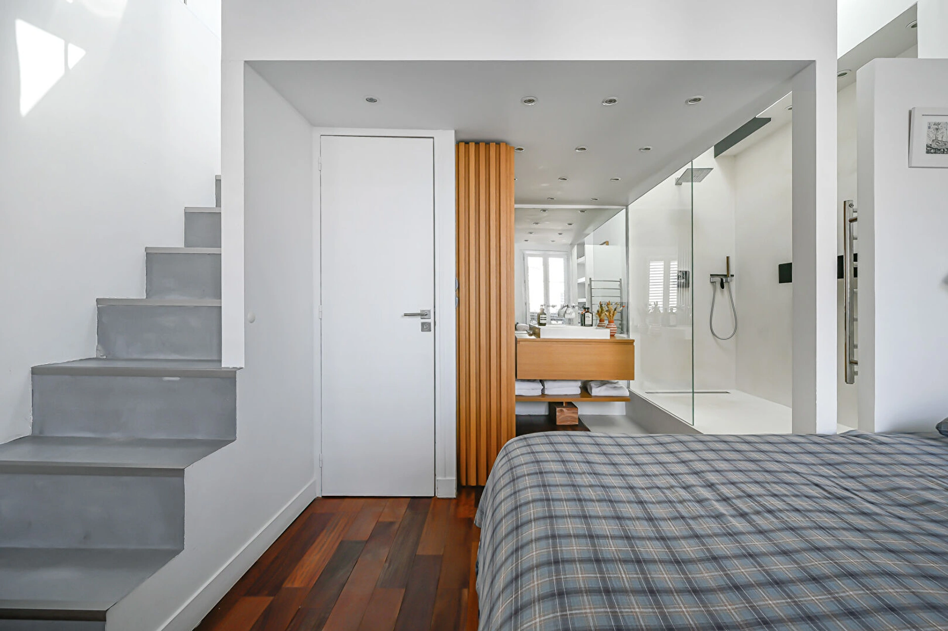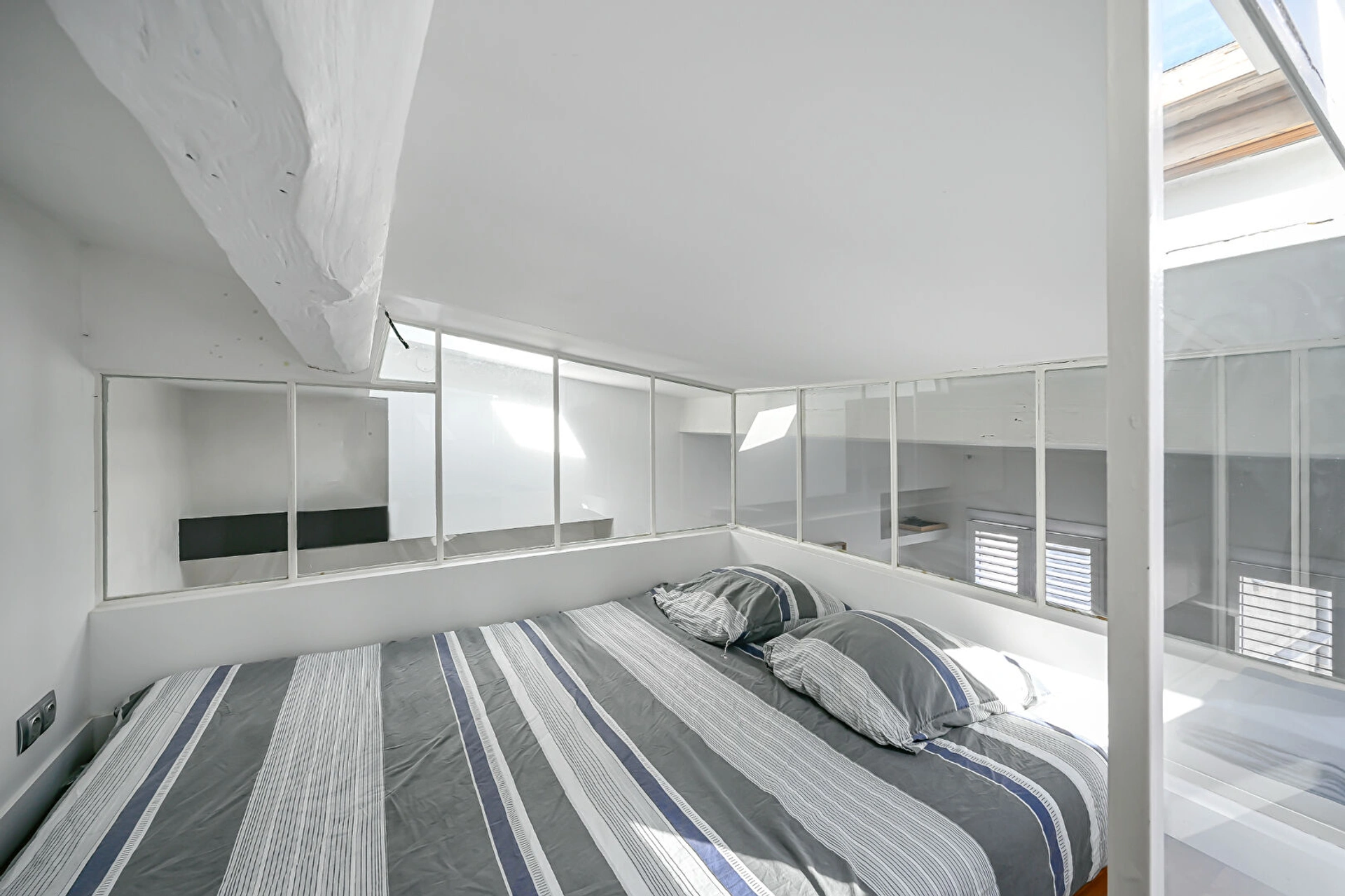 Marais historique - Découvrez ce bel appartement situé au dernier étage par escalier au sein d'un bel immeuble ancien sécurisé avec gardienne à demeure. Le bien se compose d'une entrée, d'une grande pièce de vie avec cuisine ouverte et équipée, d'une grande chambre avec douche à l'italienne et buanderie, et d'une mezzanine pour un coin nuit supplémentaire. Très bon état intérieur et excellente luminosité : fenêtres, velux et puits de lumière. Charme de l'ancien. Une cave complète ce bien.