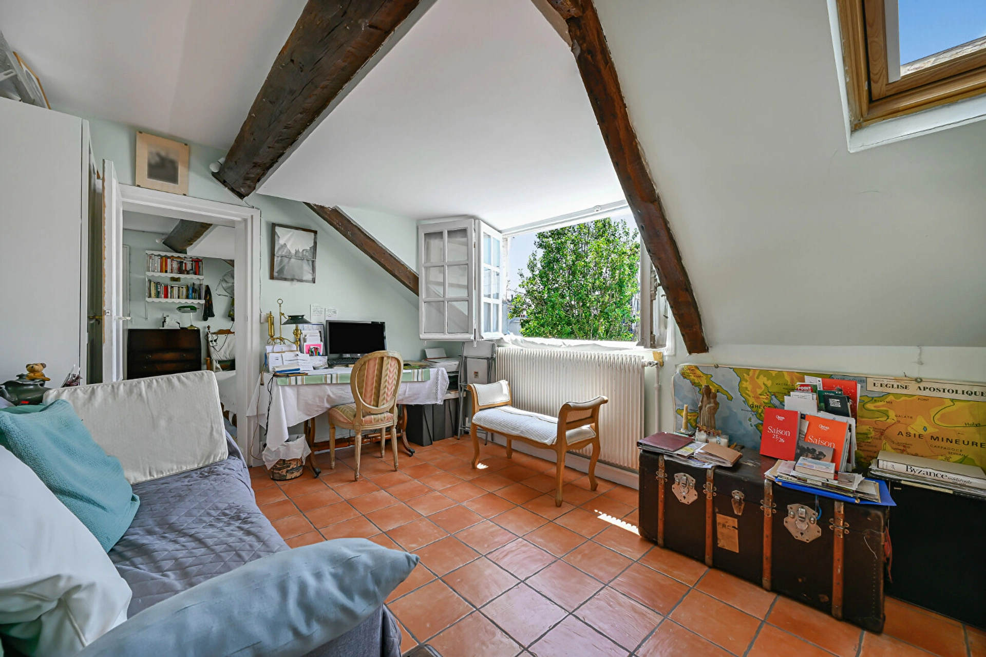 Paris 4ème - Dernier étage - Magnifique immeuble 1750 avec escalier inscrit aux monuments historiques - Gardien. Découvrez ce bel appartement au calme absolu et exposé plein sud. Le bien se compose d'une entrée avec rangements, d'un escalier privatif qui donne accès à une salle à manger avec cuisine, d'une pièce de vie, d'une chambre et d'une salle d'eau avec WC.