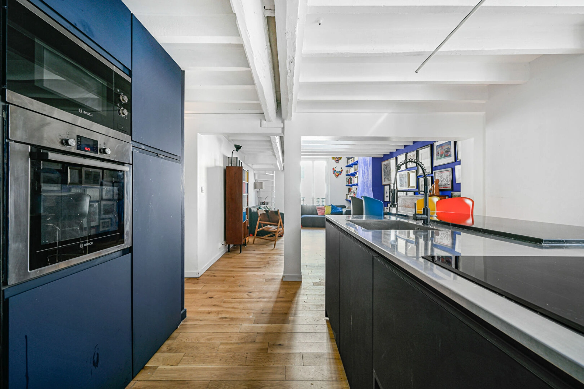 Paris 6ème - Bon Marché - Charme de l'ancien - Découvrez ce charmant duplex situé au 3e étage au sein d'un bel immeuble ancien et classé (style Restauration) avec en palmarès plusieurs tournages réalisés dans la cour. Le bien se compose d'une entrée avec salle d'eau (douche et WC), d'une grande pièce de vie traversante avec cuisine ouverte haut de gamme (îlot Veneta Cucine, inox brossé, Dekton) et à l'étage de 2 chambres et d'une SDB. Appartement entièrement rénové avec des matériaux de qualité. Surface au sol de 85.15 m2 dont 64.02 m2 carrez.