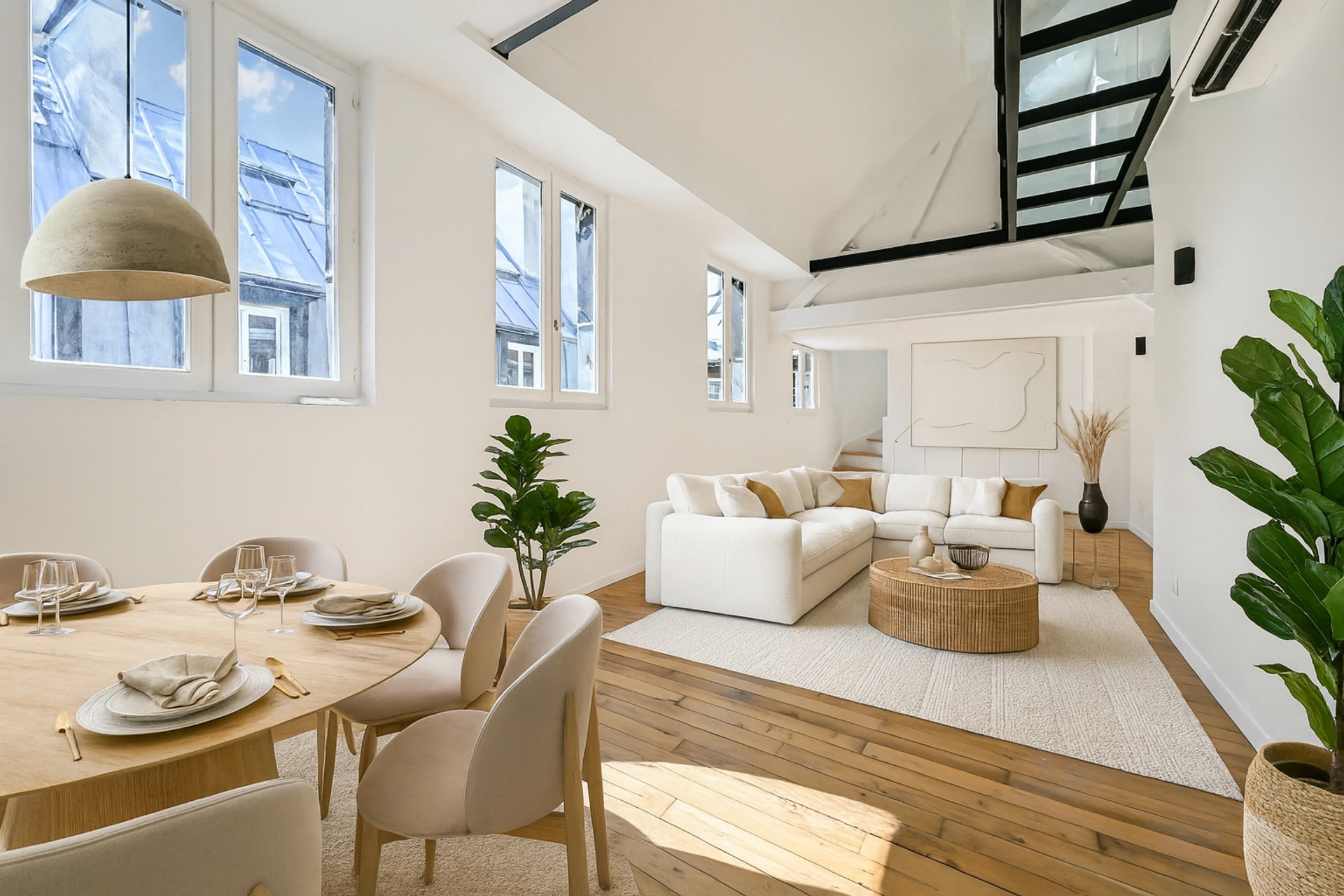 Orsay - Quais de Seine - Découvrez ce magnifique loft en duplex entièrement rénové, isolé et équipé. Situé au dernier étage par ascenseur, il se compose d'une double pièce de vie avec cuisine ouverte et toute équipée, d'une salle d'eau avec WC, d'une pièce annexe pour bureau ou chambre, et à l'étage d'un coin nuit et d'une passerelle en verre qui donne accès à un dressing avec point d'eau : WC et lavabo.